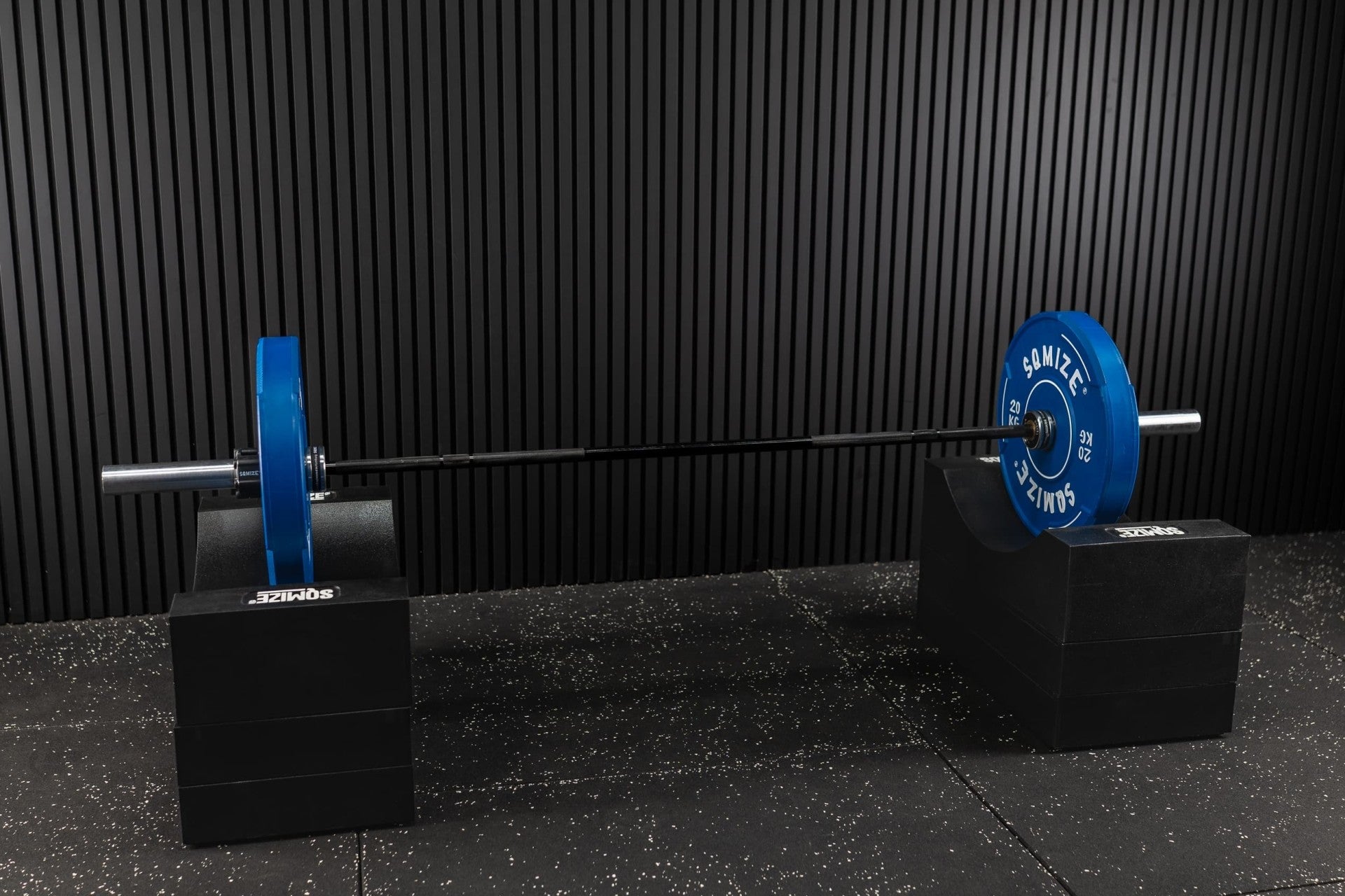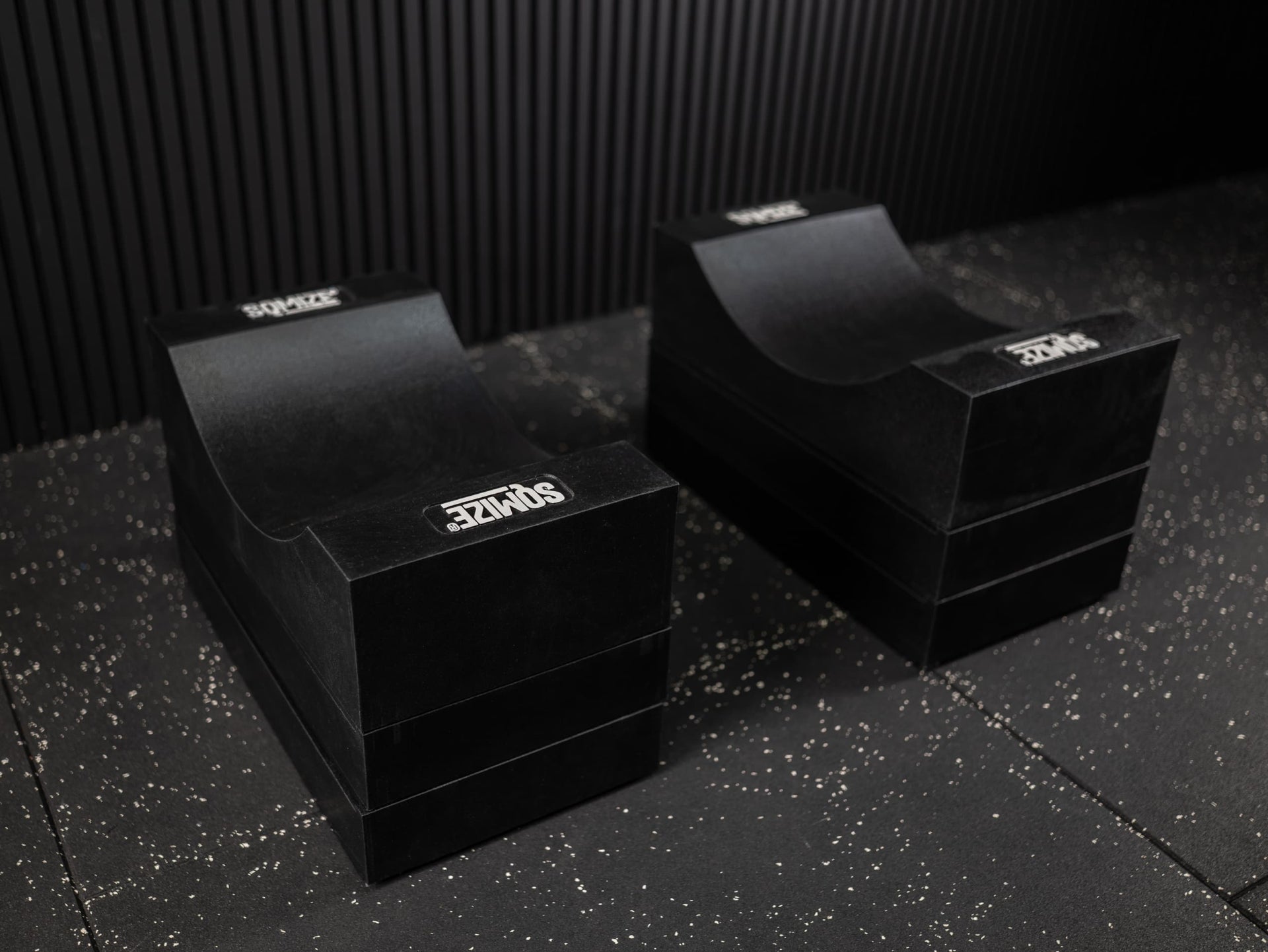 Die Rubber Lifting Blocks SQMIZE® RLB3 bieten eine hochbelastbare Alternative zu klassischen Jerk Blocks aus Holz. Gefertigt aus verdichtetem Vollgummi, sind diese Blöcke speziell für den intensiven Einsatz im Kraftsport konzipiert. Sie dienen als Erhöhung beim Kreuzheben, für Teilbewegungen beim Umsetzen und Reißen oder als stabile Ablage bei Überkopf-Übungen. Das Material sorgt für eine natürliche Schockabsorption und schont sowohl das Equipment als auch den Untergrund. Das verwendete Gummimaterial ist auf maximale Langlebigkeit ausgelegt. Im Vergleich zu Holzkonstruktionen entfällt bei den SQMIZE® RLB3 Blöcken jeglicher Montageaufwand. Zudem reduziert die hohe Materialdichte die Geräuschentwicklung beim Abwerfen der Hantel signifikant – ein wesentlicher Faktor für kommerzielle Gyms und Homegyms gleichermaßen. Das hohe Eigengewicht sorgt dafür, dass die Blöcke auch bei hohen Lasten sicher an ihrer Position bleiben. Sechs Blöcke ermöglichen 3 Arbeitshöhen von 21, 28 und 38 cm. Durch die Kombination der zwei verfügbaren Blockgrößen lässt sich die gewünschte Arbeitshöhe präzise definieren. Die identische Grundfläche von 64,5 x 35 cm garantiert einen bündigen und rutschsicheren Aufbau beim Stapeln.
